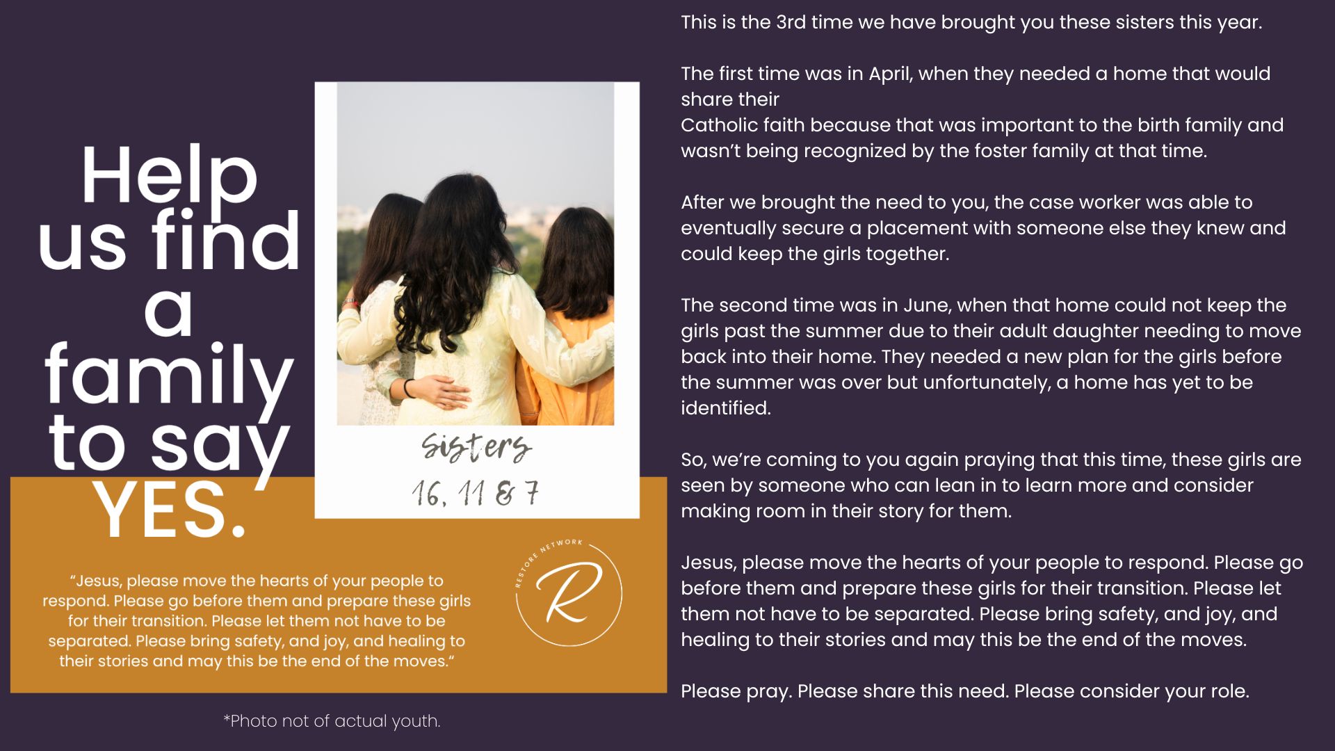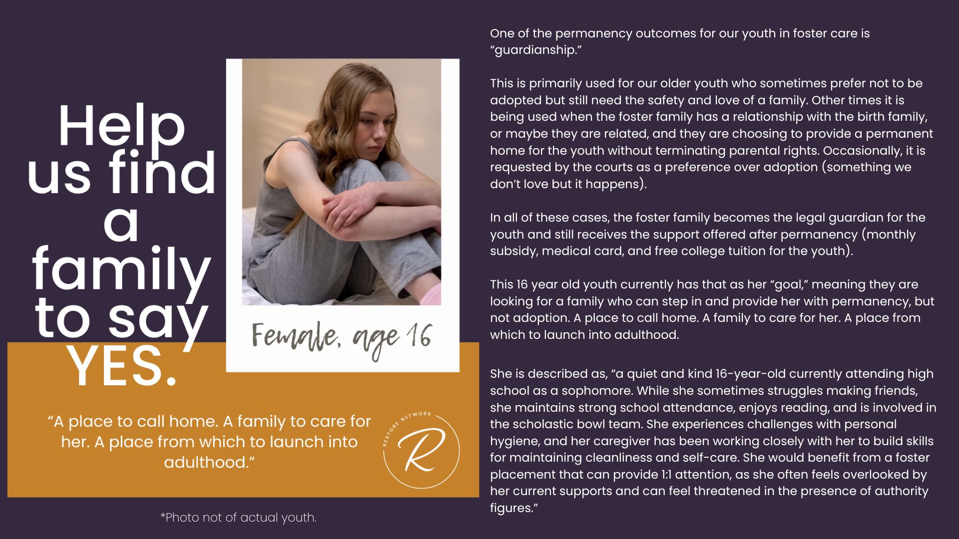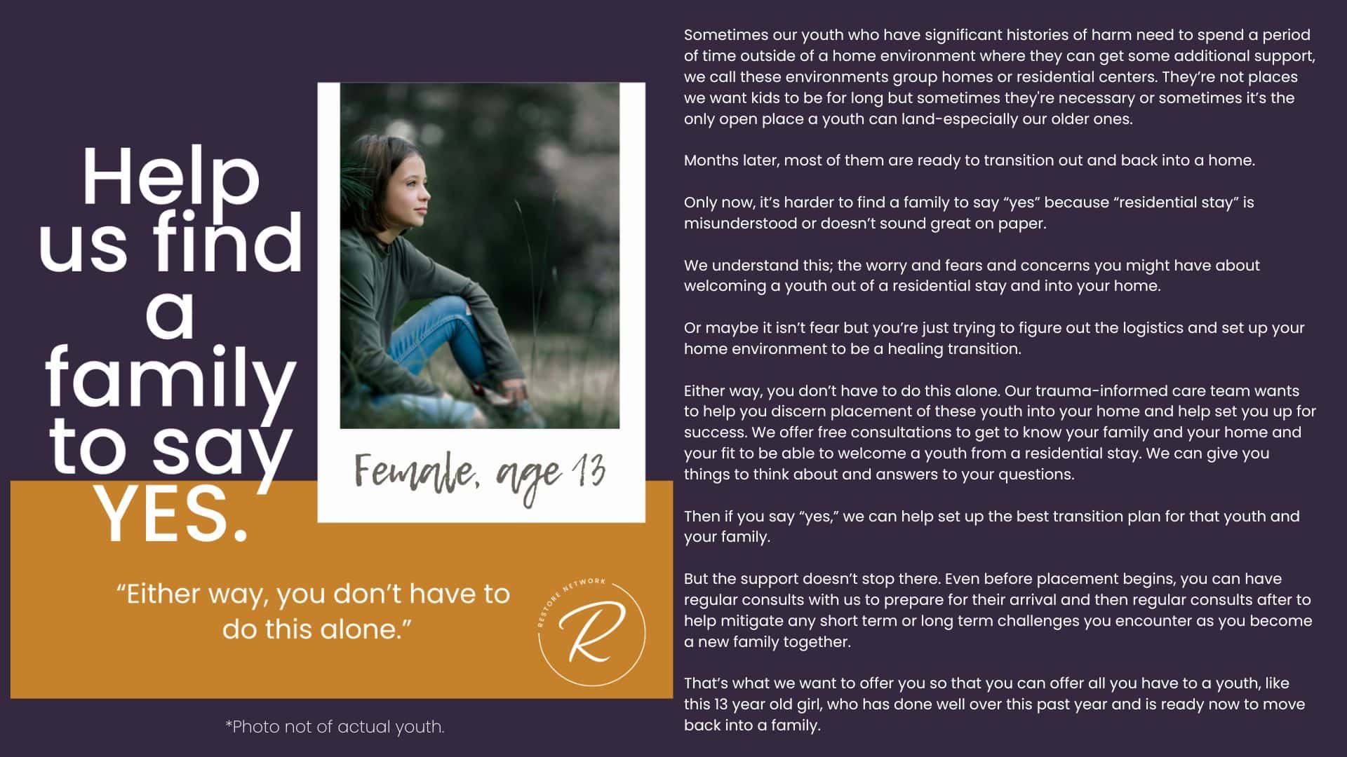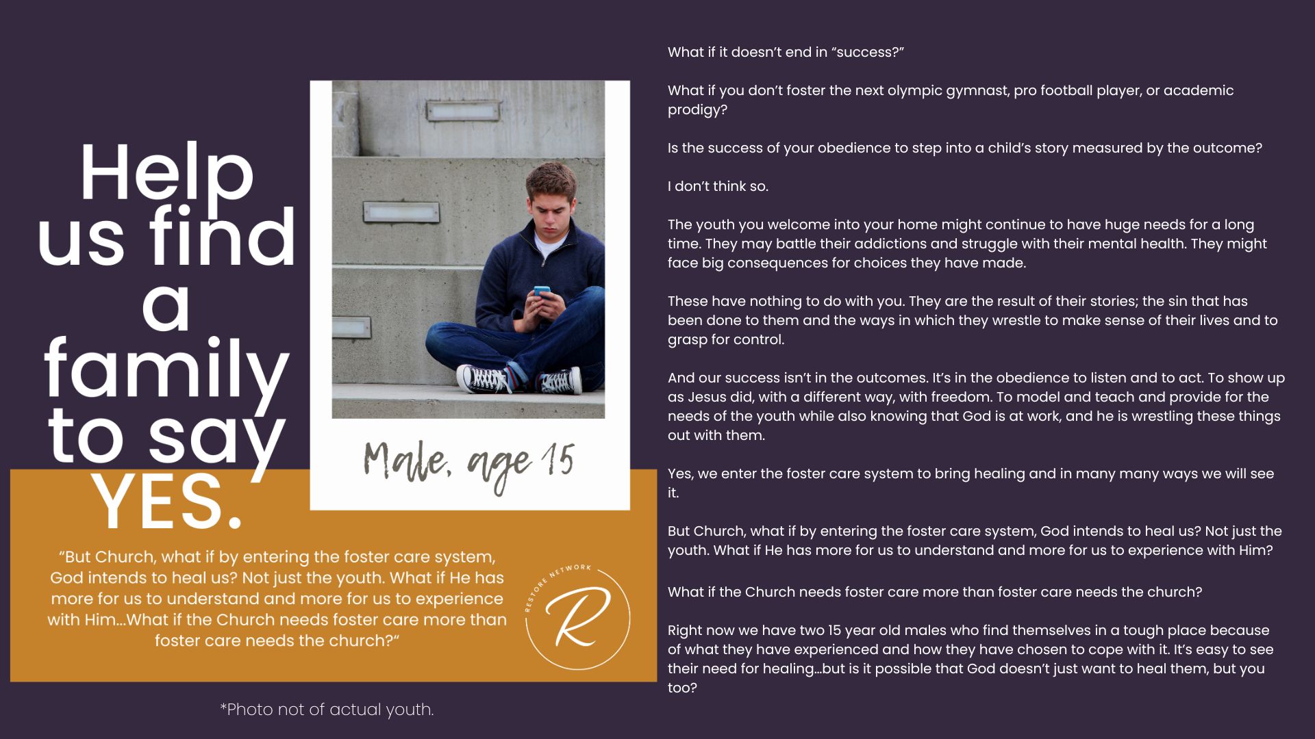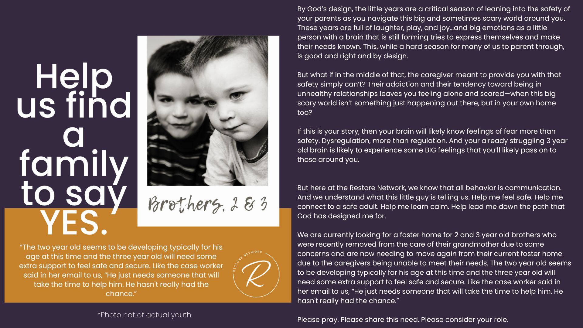 The children we serve are incredibly vulnerable and we have fiercely chosen to protect them over the years by guarding their identities and their stories. But we also want you to know them and to be moved by the stories of real kids in your county who need you. Over the years, we have attempted ways to allow you behind the curtain; to be confronted by the specific number and depth of needs of the children in our community. We’ve brought you statistics, we’ve asked for prayers when new kids have joined our homes, we’ve celebrated adoptions and reunifications with you, and we’ve been honest about the number of kids who need us and the limited number of homes we have available for them.